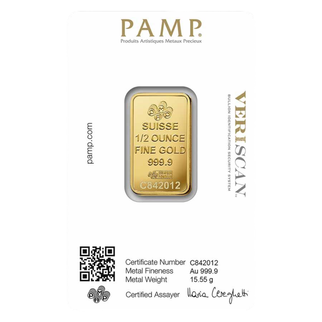 Elevate your stack with Swiss precision — add the 1/2 oz PAMP Lady Fortuna Veriscan® Gold Bar to your MintBuilder portfolio today.