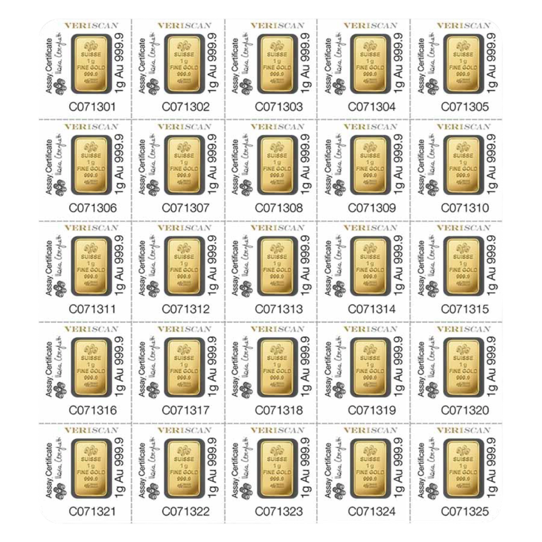 25x1 g Gold Bars – PAMP Suisse Multigram+25 (In Assay)