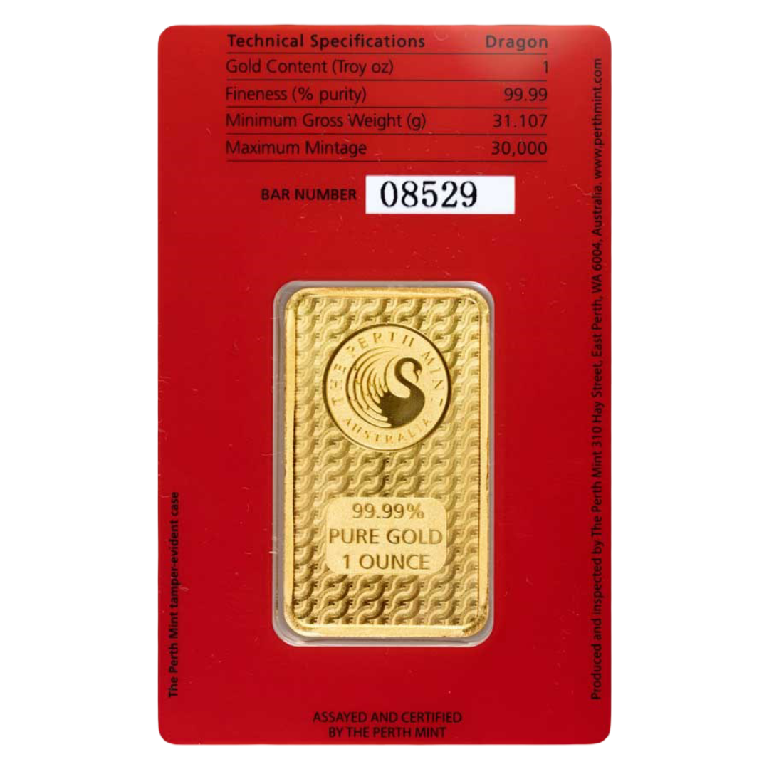 Add the Perth Mint 1 oz Gold Lunar Dragon Bar (in Assay Card) to your collection today—limited mintage, rich symbolism, and exceptional craftsmanship.