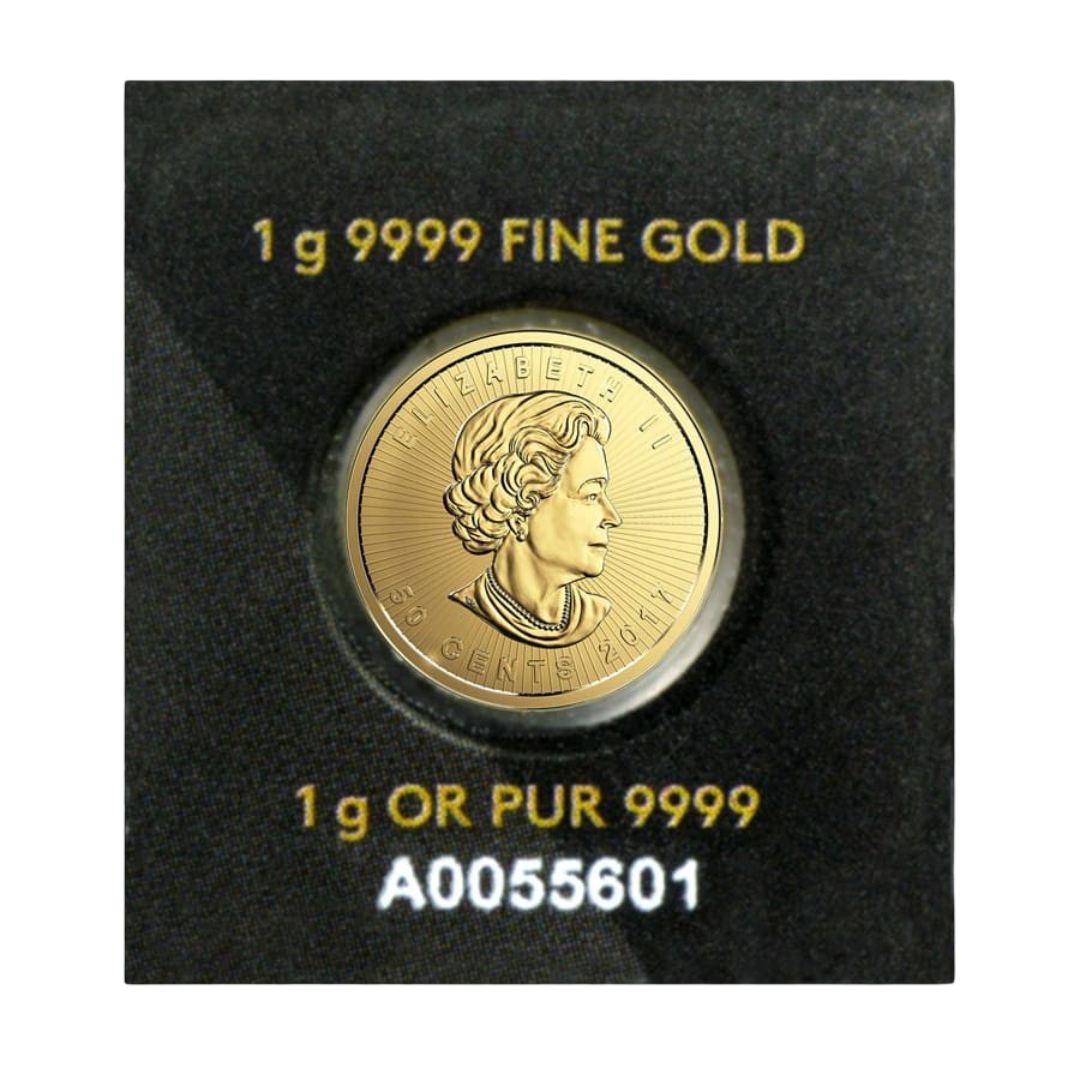 Introduced as part of the innovative Maplegram 25™ program, these 1 gram Gold Maple Leafs were designed for flexibility — allowing investors to purchase gold in small, divisible units while maintaining the prestige and security of government-backed bullion. Each coin is struck to exacting standards and verified by the Royal Canadian Mint’s state-of-the-art assay process.