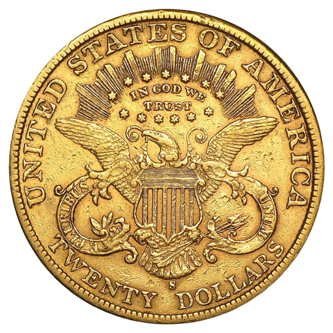 The obverse features Lady Liberty facing left, surrounded by 13 stars and the word “LIBERTY” on her coronet. The reverse showcases the majestic heraldic eagle with a shielded breast, thirteen stars above, and the inscriptions “UNITED STATES OF AMERICA” and “TWENTY DOLLARS.” Designed by Chief Engraver James B. Longacre, this enduring imagery reflects the confidence and craftsmanship of America’s Gilded Age.