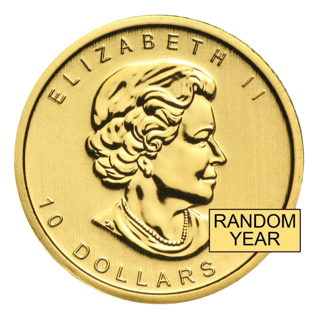 Each Canada 1/4 oz Gold Maple Leaf (.9999 Fine) offered by MintBuilder is an authentic Royal Canadian Mint issue. Random years are selected from available inventory and may include special commemorative or privy-marked editions.