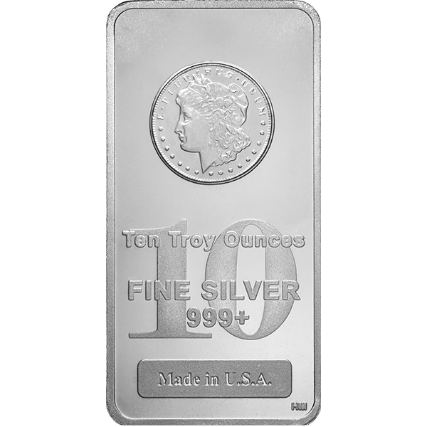 Each one contains 10 Troy ounces of .999 Pure Silver. Varied designs, but weight and purity are always guaranteed. So add some nice 10 oz silver bars to your savings portfolio each month.