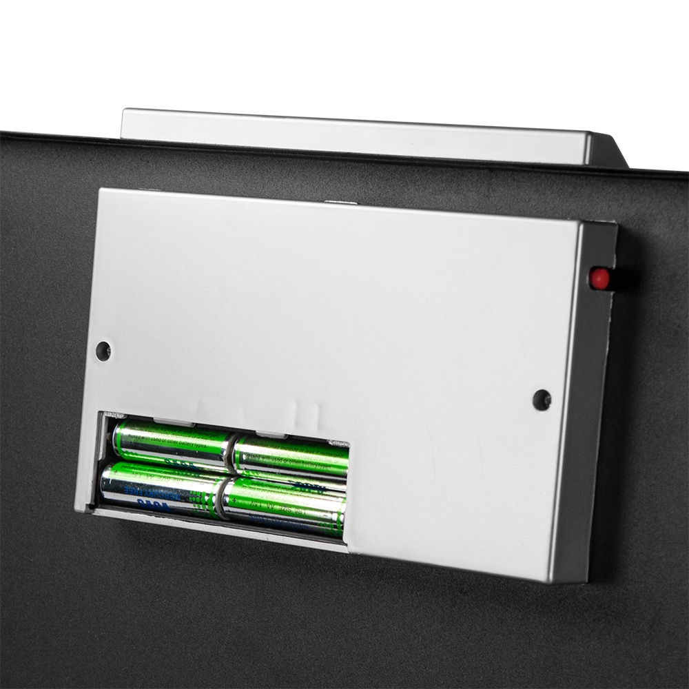 Inside, a soft protective floor mat ensures your valuables remain scratch-free, while the spacious interior fits a variety of personal items. With two backup keys and four AA batteries included, you'll have everything you need for instant peace of mind right out of the box.