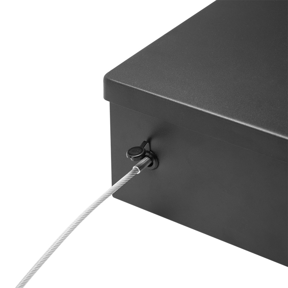 - β Includes removable steel tethering cable to secure box to fixed objects